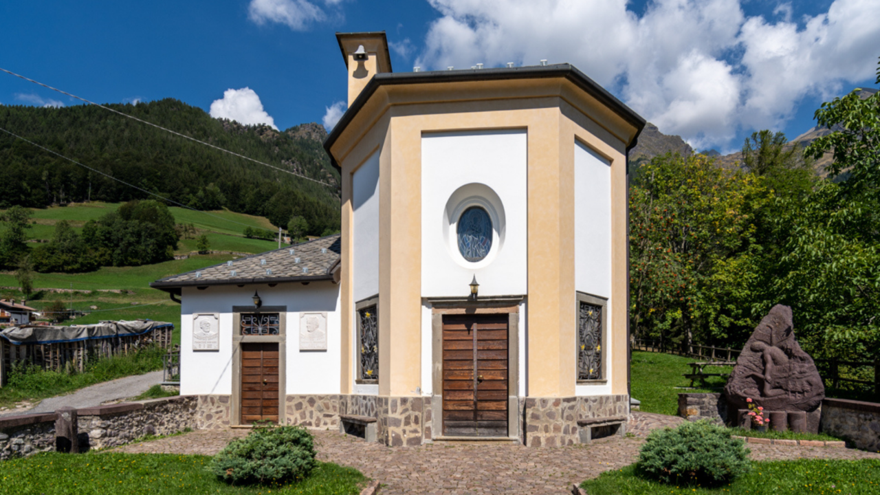 Take the uphill street next to the Bar Imperial and continue uphill, passing by Bar Sport (a characteristic building with well-preserved antique style) and the Albergo Brescia. Continue on flat terrain, passing at the base of the church’s imposing staircase; at the intersection, turn left, taking the uphill road. Pass through the stone arch and ascend to the provincial road, then turn right towards Schilpario.