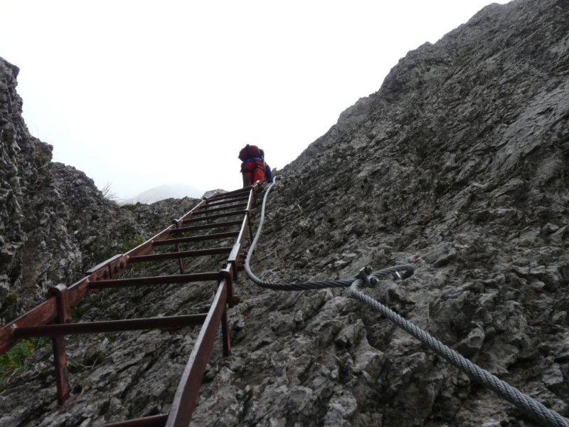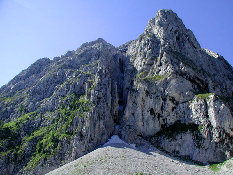 The Ferrata della Porta crosses the northeast face of the Presolana (the “Queen of the Orobie Alps”), a unique and fascinating Dolomite-like environment. This side of the mountain is wild and austere; in fact, even in late summer, you may encounter snow couloirs that persist for a long time. The climb is demanding and long overall, especially if tackled as a traverse from Colere to the Presolana Pass, passing over the summit of Mount Visolo.