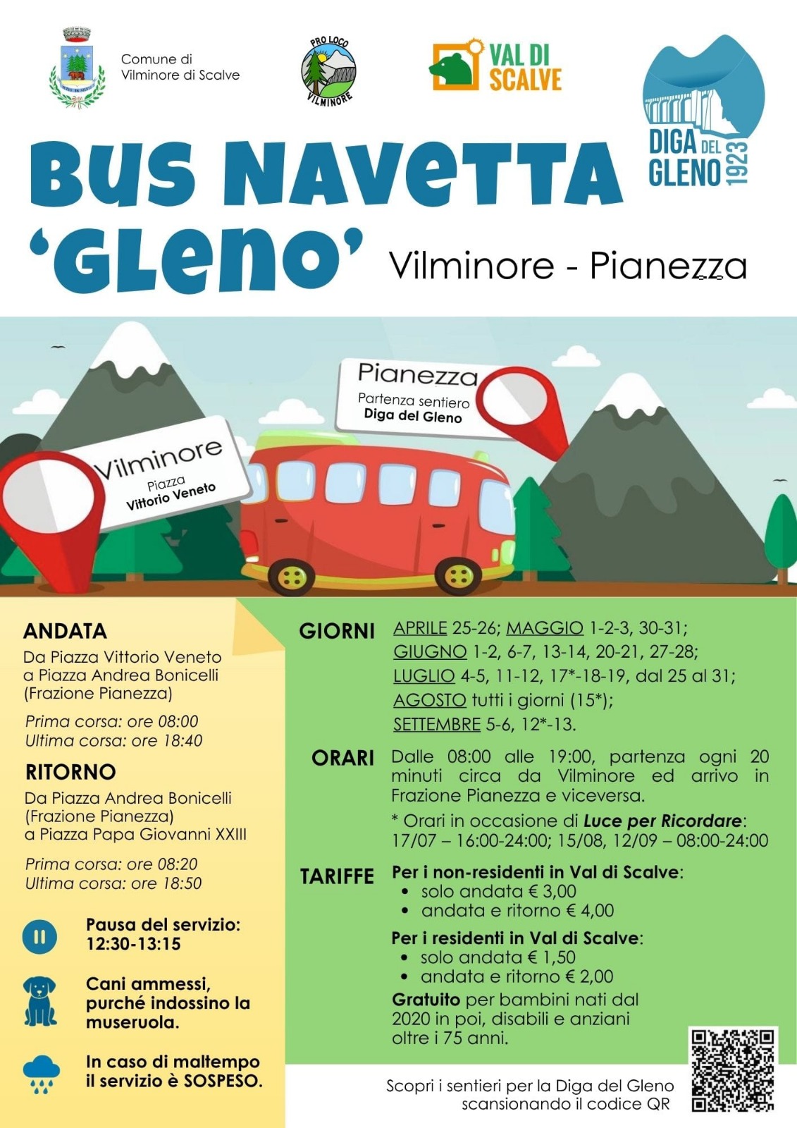 Bus navetta Vilminore-Pianezza – Estate 2026