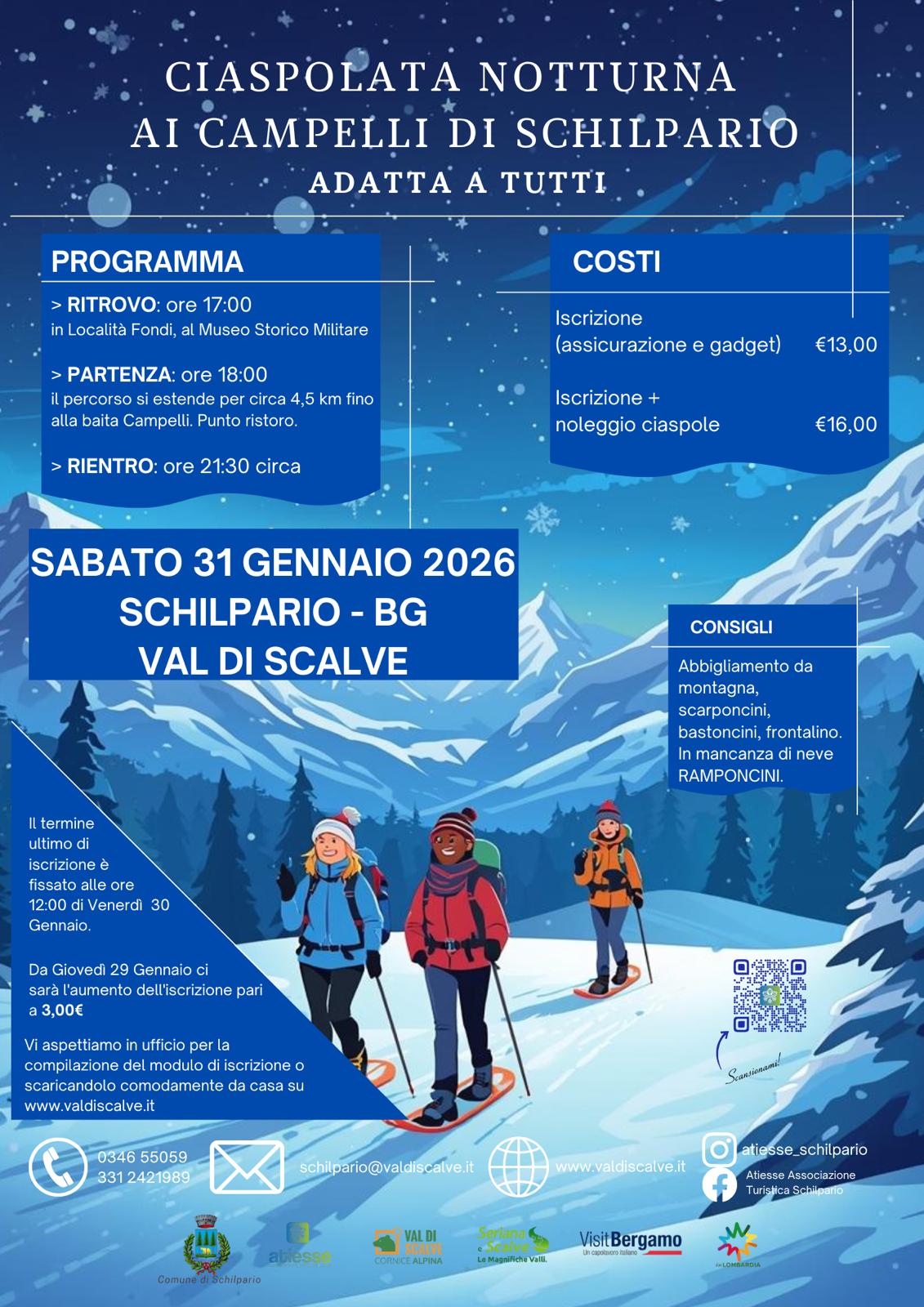 - Iscrizione + noleggio ciaspole: €16,00