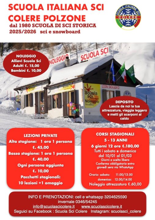 Dal 1980, la scuola sci Colere Polzone propone corsi invernali per bambini e adulti, principianti ed esperti. Quest anno, troviamo:
