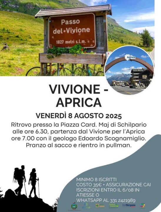 Ritrovo venerdì 8 Agosto presso piazza Card. Maj alle 6.30 e arrivo in pullman fino al passo del Vivione.
