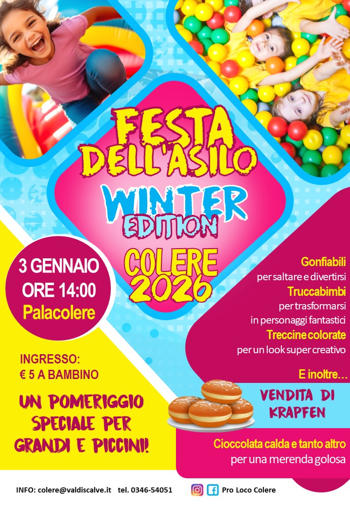 Sabato 3 Gennaio, a Colere, vi aspetta un pomeriggio speciale per grandi e piccini, con la festa dell’asilo, versione invernale, presso il Palacolere!