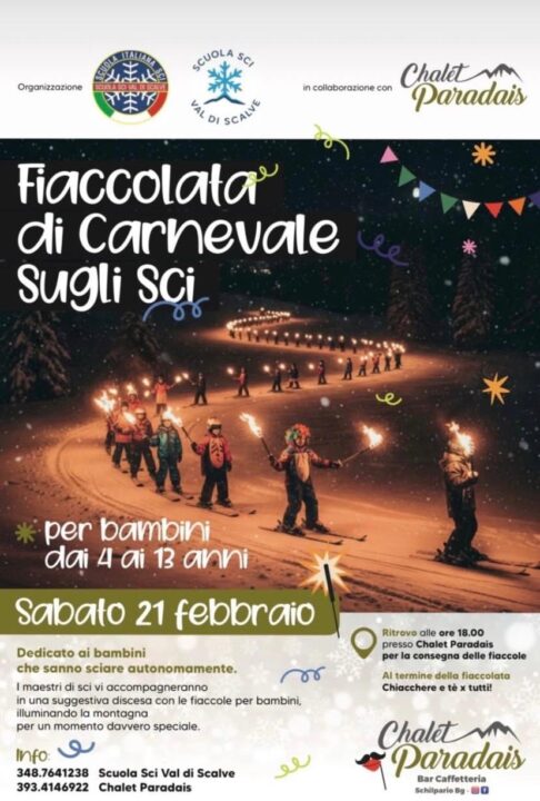 Il ritrovo, per i bambini, provvisti di sci, è alle ore 18.00 presso lo Chalet Paradais per la consegna delle fiaccole.
