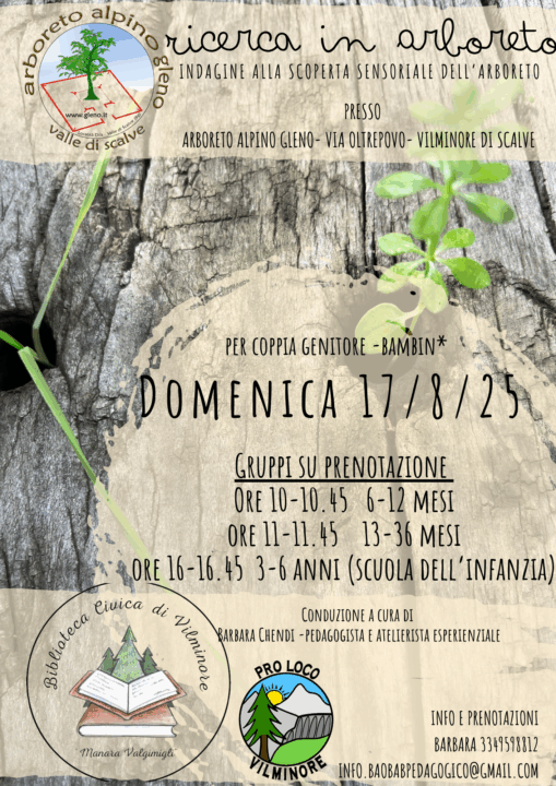 Domenica 17 Agosto all’Arboreto Alpino Gleno vi aspetta un’intera giornata di immersione nel verde con l’animazione della pedagogista Barbara Chendi!