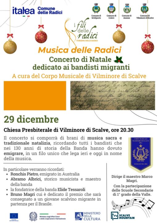 Il concerto si comporrà di brani di musica sacra e tradizione natalizia, ricordando tutti i bandisti che nei 130 anni di storia della Banda hanno dovuto emigrare, in un filo unico che lega ieri e oggi in nome della musica.