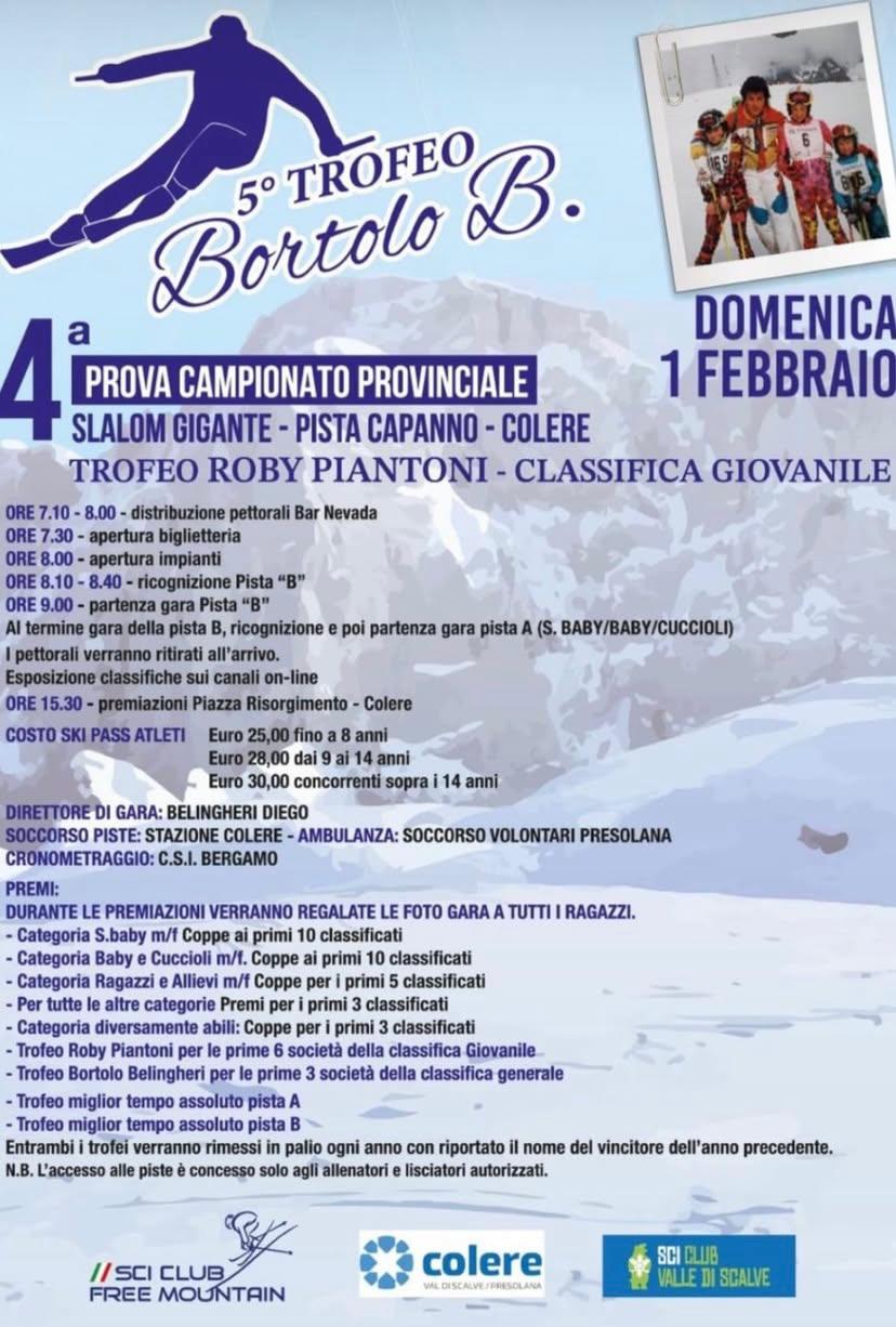Domenica 1 febbraio, le piste di Colere si accendono per una giornata dedicata allo sport e al divertimento. In occasione della 4ª prova del Campionato Provinciale, atleti di tutte le età si sfideranno in uno Slalom Gigante sulla Pista Capanno.