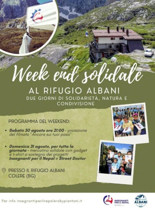 Il rifugio Albani, in collaborazione con l’associazione Roby Piantoni, organizza un weekend a sostegno del progetto “Insegnanti per il Nepal”. Per maggiori informazioni contattare direttamente il rifugio Albani al 338 4334709 o allo 0346 5110