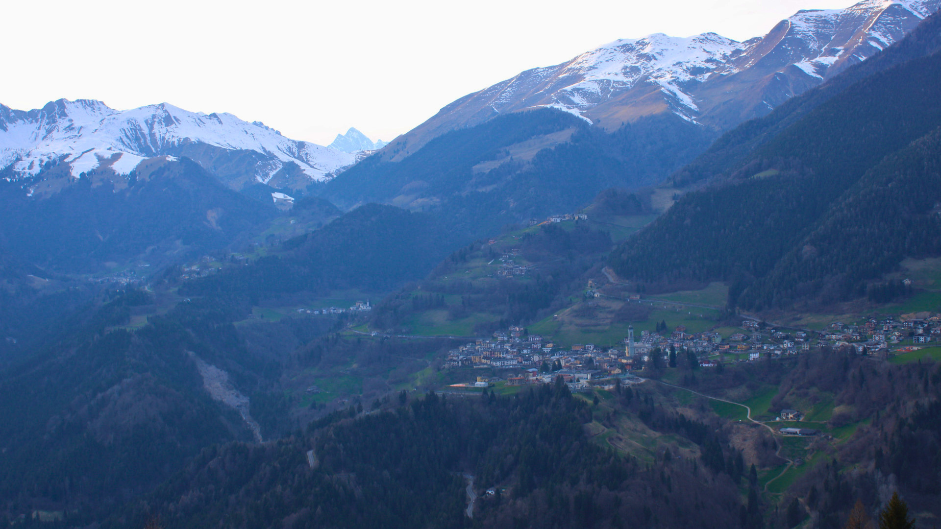 Una volta arrivati presso la chiesina Alpina, potreste proseguire verso Azzone, o per seguire l’itinerario proposto, scendere lungo la strada Vasp che scende a destra della Chiesina, per poi, riprendere, dopo una piccola salita, l’itinerario di partenza e ritornare a Pradella, dove è possibile fermarsi per una merenda o un pranzo presso l’Hotel Ristorante San Marco.
