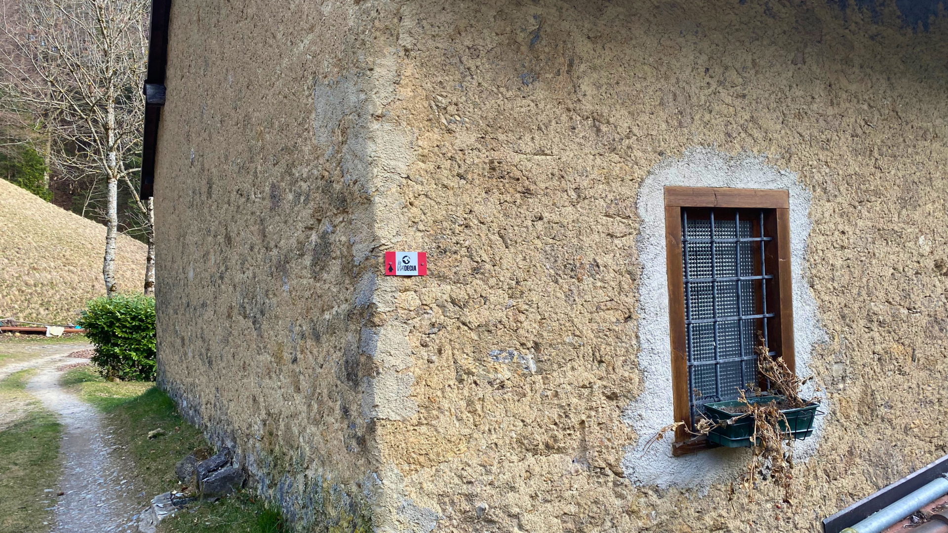 Da quì, procedete per un centinaio di metri verso il centro del paesino, dalla parte opposta al cimitero, e, all’altezza della fontana, prendete il sentiero che sale sulla destra e segna come indicazione “chiesetta Alpina” o “Azzone”.