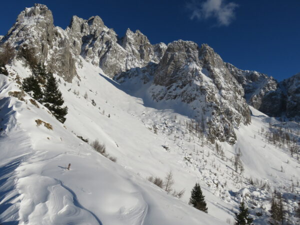 Andare in montagna comporta sempre dei rischi. Valuta sempre la tua preparazione prima di intraprendere un itinerario di scialpinismo, e, per sicurezza, contatta gli uffici turistici o il CAI di zona per sapere di più sulla condizione neve e sentieri. Se fai scialpinismo, è obbligatorio avere con te sonda, pala e ARTVA. Ricordati di consultare anche il bollettino neve e valanghe.